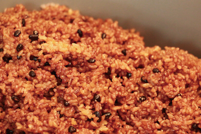 「酵素玄米」とは、玄米を小豆と塩と一緒に特殊な高圧力釜で炊き、